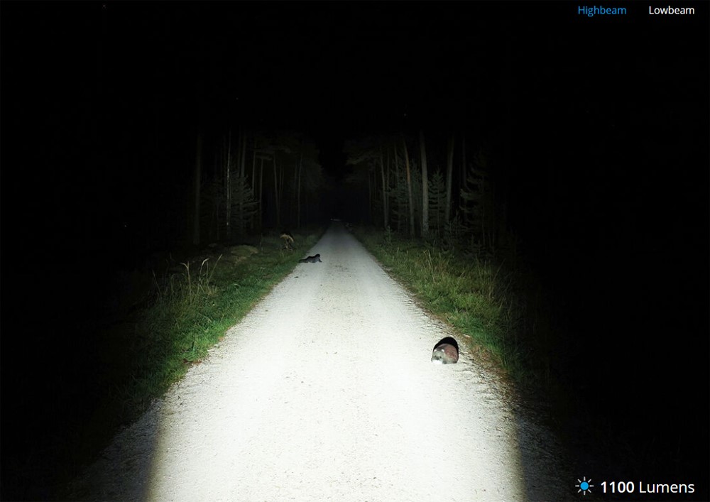 1100 lumenów dla świateł drogowych z tak małej lampki wydaje się wręcz niewiarygodne. Za pomocą pilota Bluetooth możesz przełączać między światłami mijania i drogowymi w ułamku sekundy lub przyciemniać aktualny poziom światła.