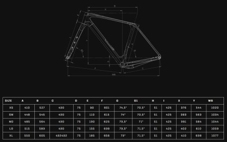 - Rama: Arcadex PRO Disc wykonana z kompozytu włókna węglowego (Epoxy – SM Carbon Fiber Composite). Specyfikacja hamulców: Flat Mount 140/160. Standard suportu: PressFit 86,5 x Ø41 mm. Oś tylna: przelotowa 12 mm (OLD 142 mm). Maksymalna kompatybilność zębatek: 38T-44T. Minimalna linia łańcucha: 45,5 mm. Prześwit na opony: ETRTO 622-50 mm. Średnica sztycy: Ø27,2 mm.