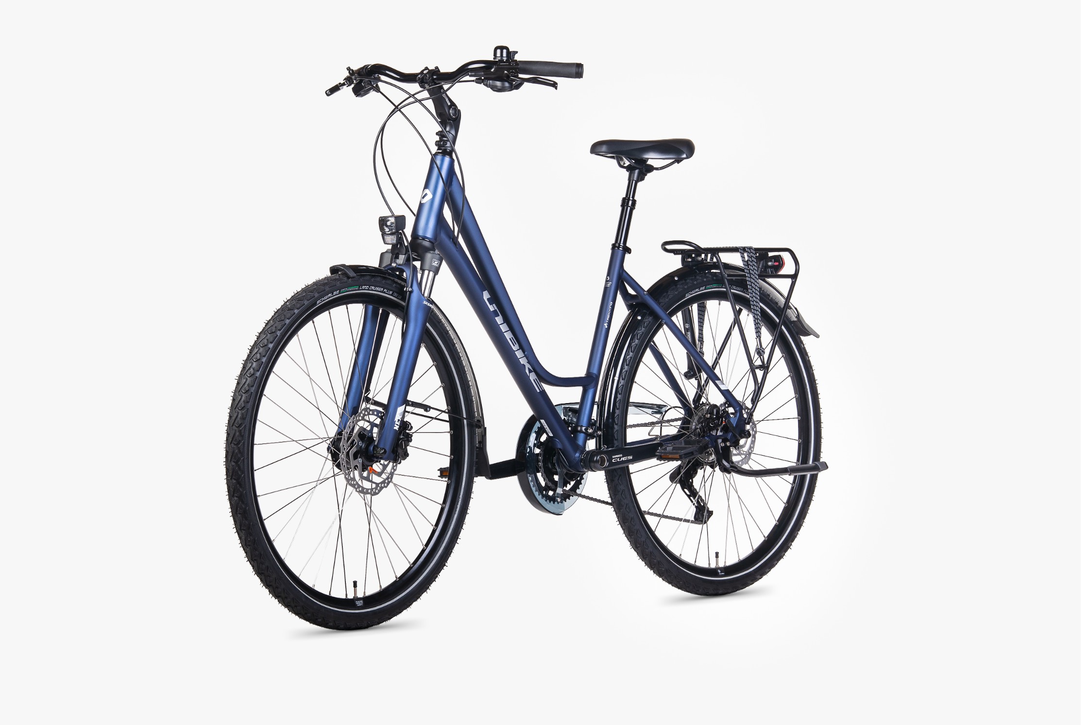 Rower wyposażono w hydrauliczne hamulce tarczowe Shimano MT200, które zapewniają pewne i przewidywalne hamowanie. Koła oparto na piastach Shimano, w tym przedniej piaście z prądnicą Shimano C3000-3N, a całość uzupełniają opony Schwalbe Land Cruiser Plus 28×1.75 z paskiem odblaskowym Reflex.
