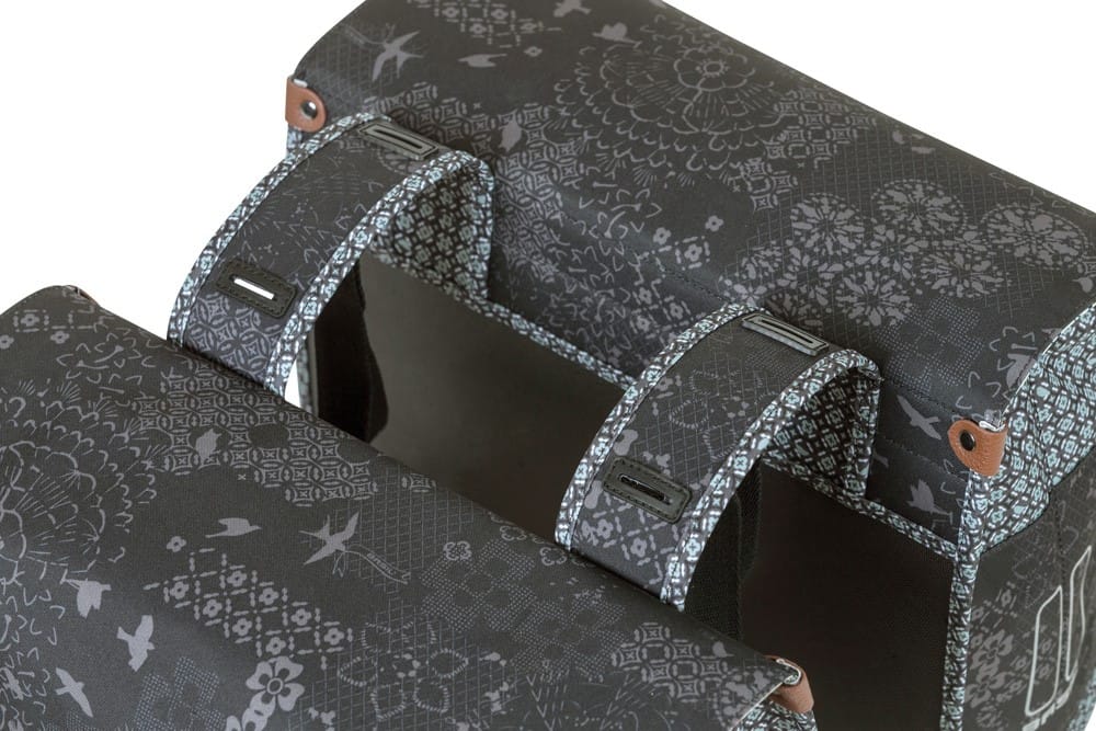 Basil Boheme Double Pannier to elegancka i funkcjonalna podwójna sakwa rowerowa o pojemności 35 litrów, zaprojektowana z myślą o codziennej jeździe, zakupach i weekendowych wycieczkach. Wyróżnia się stylowym wzorem oraz solidnym wykonaniem z wodoodpornego materiału, który dobrze chroni przewożony bagaż przed warunkami pogodowymi.