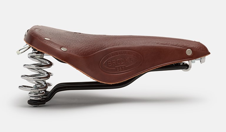 Klasycznie amortyzowane, zapewniając najwyższy komfort, B67 to idealne siodełko do codziennego użytku w mieście i na wycieczkach w wyprostowanej pozycji jazdy. Siodełko do rowerów miejskich, rowerów w stylu holenderskim, rowerów cargo i rowerów turystycznych. Siodełko B67 wykonane jest z pojedynczą szyną do użytku ze standardowymi sztycami z mikroregulacją. Wykonane ze skóry garbowanej roślinnie, zapewniając elastyczność przypominającą hamak, która z czasem pięknie się starzeje i dopasowuje do anatomicznego kształtu rowerzysty.